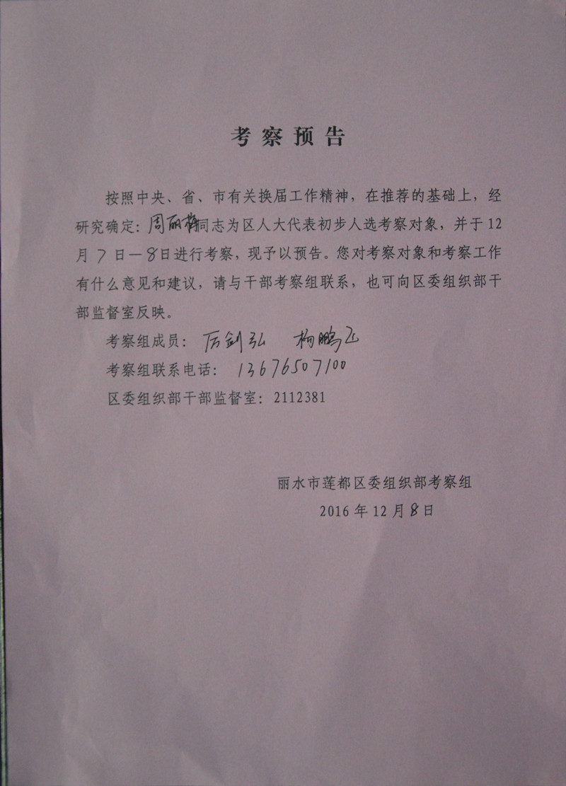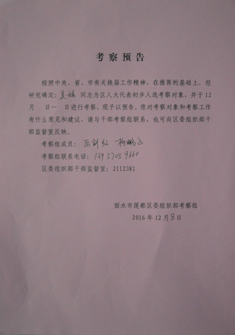 麗水市第四次黨代會(huì)代表初步人選考察預(yù)告