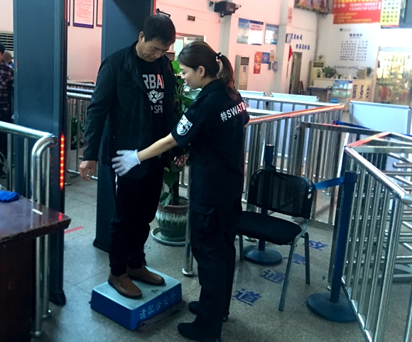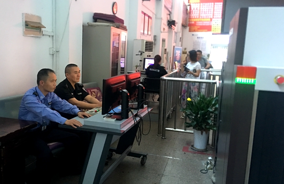 進站安檢崗位上,保衛(wèi)稽查科員們認真甄別禁止攜帶進站的危險品和違禁品,為廣大乘客的生命財產(chǎn)安全筑起安全防線。