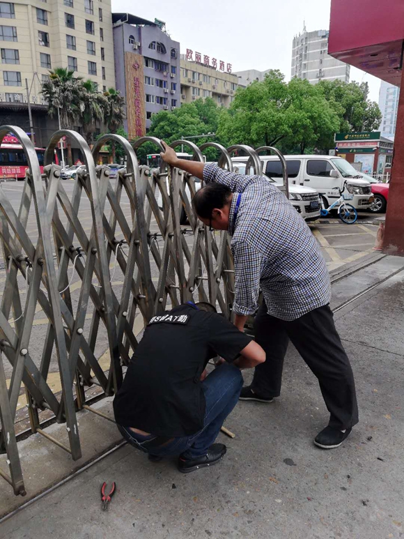 在車輛進口處,“老戴”和副科長余林峰還對電子門進行了檢查,發(fā)現(xiàn)因為設備陳舊,有幾個滾輪已經(jīng)脫落,于是叫來科室里的其他成員幫忙,人多力量大,大家一起動手,不一會兒就把電子門修好了。雖然修好門已經(jīng)是下班時間,但是他們并沒有急著回家,“老戴”和余林峰又檢查起了開關(guān)門遙控器,其他同志也分頭對站場各個角落的安全狀況進行了檢查。