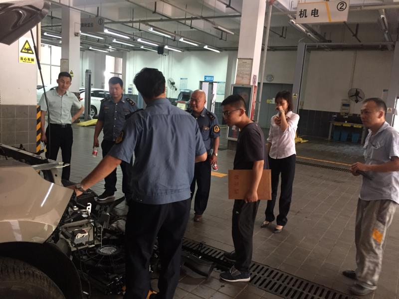 檢查組一行詳細檢查了事故車輛臺賬及站內(nèi)各項設(shè)備的安全工作情況,實地查看了機修車間、鈑金、油漆烤房、前臺業(yè)務(wù)、事故結(jié)算等崗位的工作標準、服務(wù)要求和現(xiàn)場員工工作情況,并參照“機動車維修企業(yè)信譽考核”標準進行了一一核查。