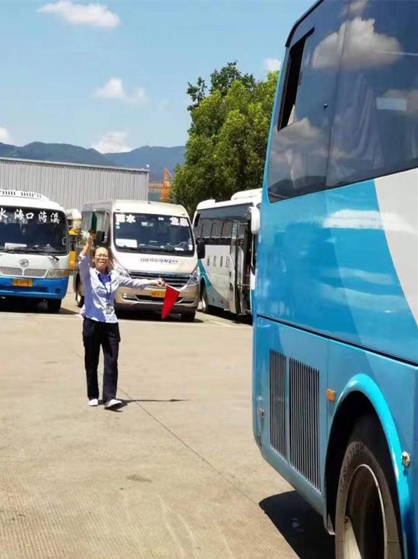 自從麗水進(jìn)入高溫模式以來,客運東站的站場就像一座大熔爐。在被曬得白花花的水泥地上,只要你稍作停留,熱浪就會從腳底直往上竄,鞋底像要被熔化似的。而在客運東站,有這樣一個班組,他們每天頂著烈日,用紅綠旗指揮著一輛輛滿載旅客的車子安全出發(fā)--這就是客運東站的行車組,由13名女同志和1名男同志組成。