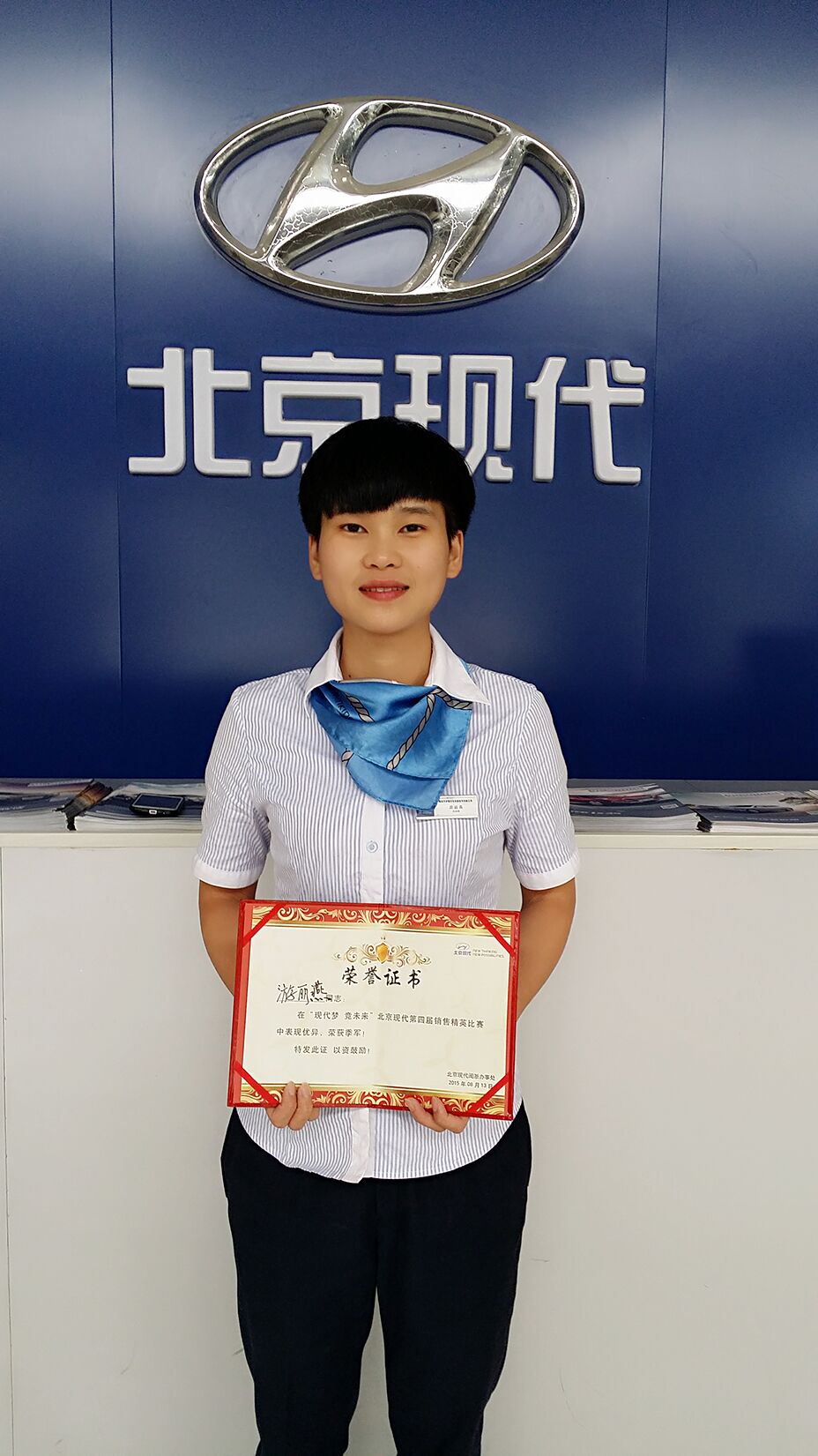 2015年,游麗燕代表伊翔店參加閩浙區(qū)銷售比武大賽,她有憑借自己熟練的銷售知識(shí),過(guò)五關(guān)斬六將,在眾多銷售顧問(wèn)中脫穎而出,榮獲了“閩浙區(qū)銷售比武大賽季軍”的稱號(hào)。