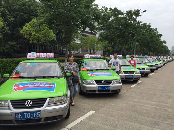 一年一度的高考,牽動(dòng)著人們的心。為了能使今年的“高考應(yīng)急服務(wù)”活動(dòng)圓滿完成,6月6日,所有參加活動(dòng)的52輛出租車,在天寧工業(yè)區(qū)排成長(zhǎng)龍,師傅們?yōu)樽约旱能囐N上統(tǒng)一的服務(wù)標(biāo)志。麗汽集團(tuán)客長(zhǎng)運(yùn)出租車分公司經(jīng)理梁巍代表市區(qū)三家出租車公司發(fā)出“愛心送考”倡議。麗汽集團(tuán)客長(zhǎng)運(yùn)出租車分公司共有22出租車參與“高考應(yīng)急服務(wù)”。